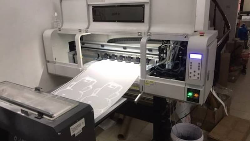 Sử dụng máy in chuyển nhiệt kỹ thuật số để in hình ảnh 3D lên màng PET có nền trắng.